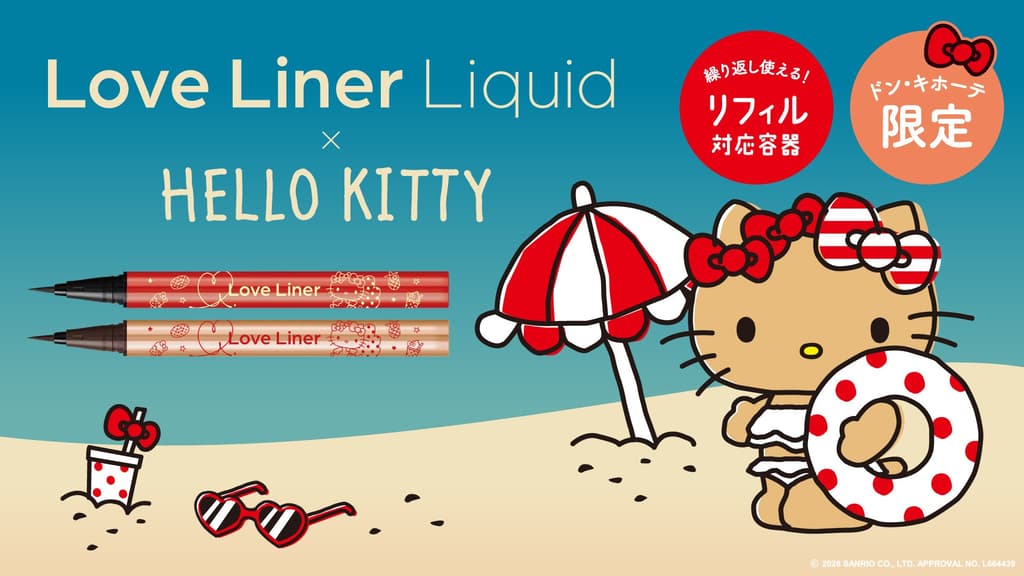 Love Liner, la marca de maquillaje para ojos de msh Corporation, se une al icónico personaje de Sanrio, Hello Kitty, para una colección de delineadores líquidos de edición limitada. Disponible exclusivamente en las tiendas del grupo Don Quijote, Apita y Piago en todo el país, la colaboración sale a la venta a partir del viernes 13 de marzo de 2026, en cantidades limitadas.