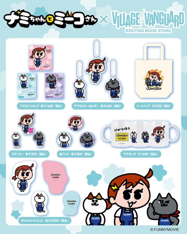 La colaboración especial presenta a NAMI y MIKO vestidas con trajes de delantal de Village Vanguard, un diseño exclusivo de este proyecto que no se puede encontrar en ningún otro lugar. La línea incluye artículos que son geniales para exhibir o para llevar.