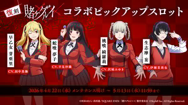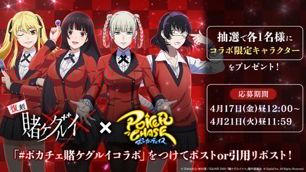 El juego de póker estilo batalla real Texas Hold'em Poker Chase presenta una colaboración de reactivación con el anime de TV Kakegurui ×× (2ª temporada de Compulsive Gambler), que se llevará a cabo del 22 de abril (miércoles) al 13 de mayo (miércoles) de 2026.