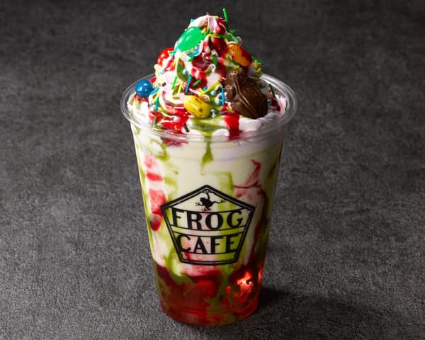 Inspirado en la escena del Expreso de Hogwarts en la que Harry compra todos los dulces del carrito, este colorido batido está cubierto con grageas de todos los sabores de Bertie Bott y ranas de chocolate, capturando toda la emoción de ir a Hogwarts por primera vez.