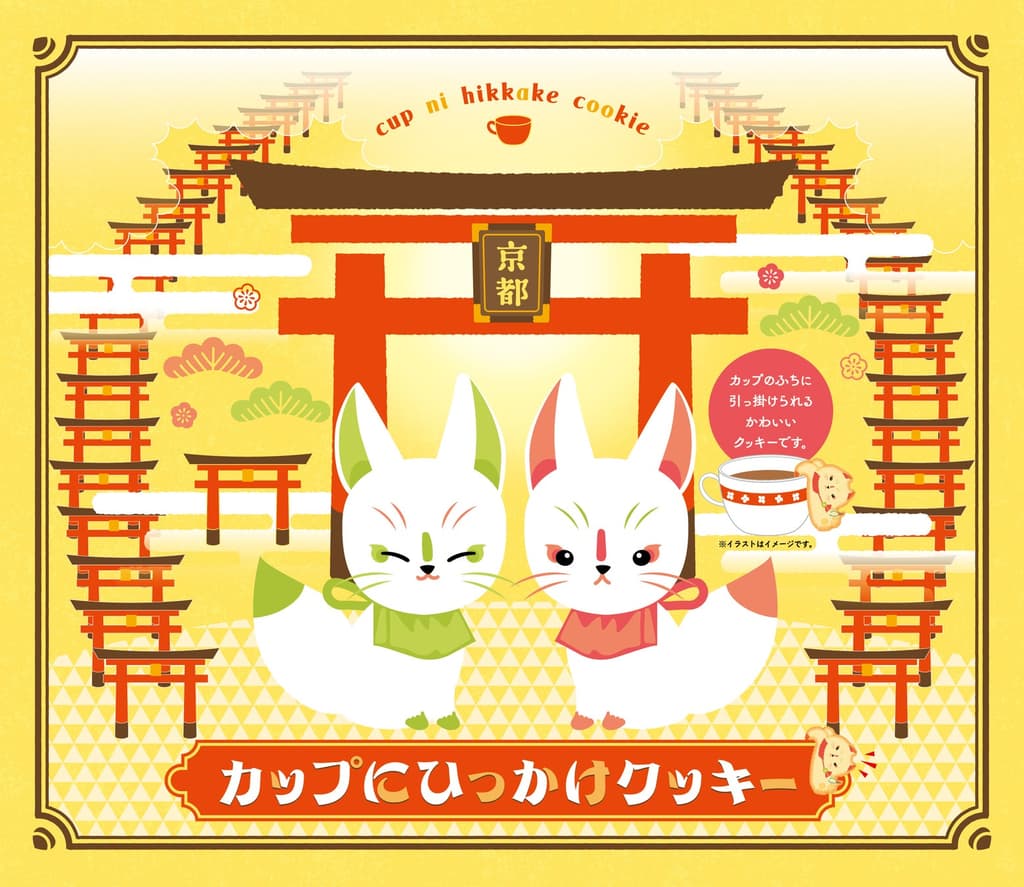 Una nueva y divertida golosina ha llegado a las tiendas de recuerdos de todo Japón: la "Galleta Colgante para Taza", una galleta diseñada para engancharse en el borde de una taza. Cada pieza presenta una ilustración impresa de un zorro blanco, lo que le permite servir como un bocadillo y un pequeño acento decorativo mientras disfrutas de tu bebida.