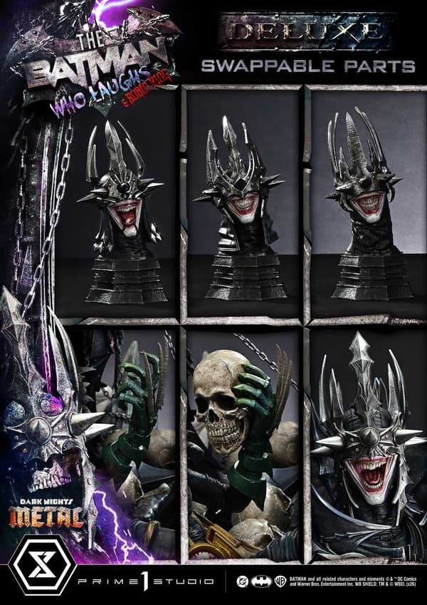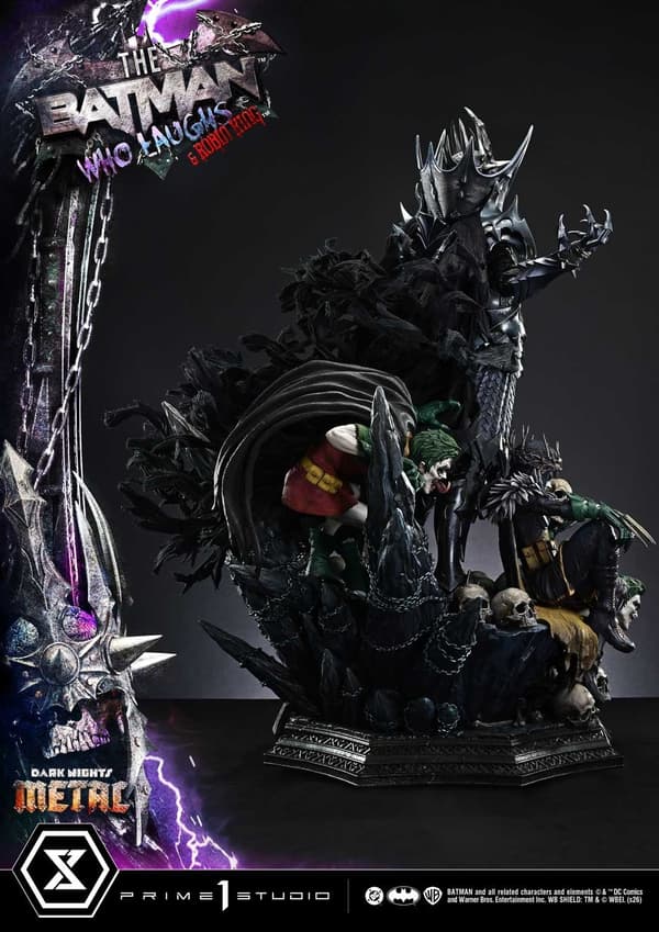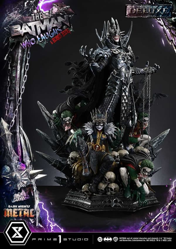 Merek premium dari Prime 1 Studio, PRIME 1 STATUE, telah menambahkan The Batman Who Laughs dan Robin King dari Dark Nights: Death Metal karya DC Comics ke dalam jajaran Museum Masterline mereka sebagai patung skala 1/3. Pre-order telah dibuka sejak 23 April, dengan produk yang diperkirakan akan dikirim antara September hingga Desember 2027.