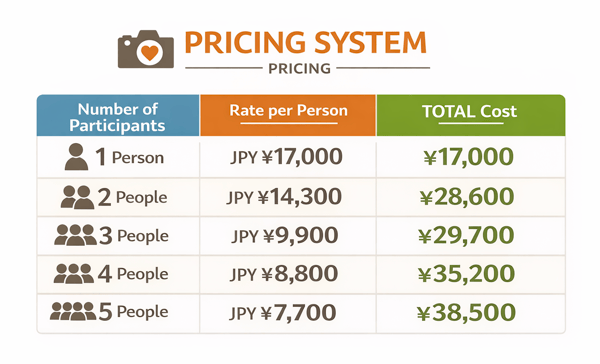 Sesi fotografi tersedia di mana saja di Shizuoka dan dapat dipesan hingga 3 hari sebelumnya. Kami akan mengatur fotografer yang berbahasa Inggris/Mandarin/Korea.