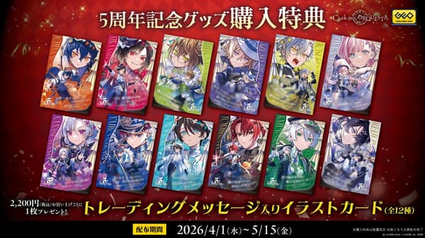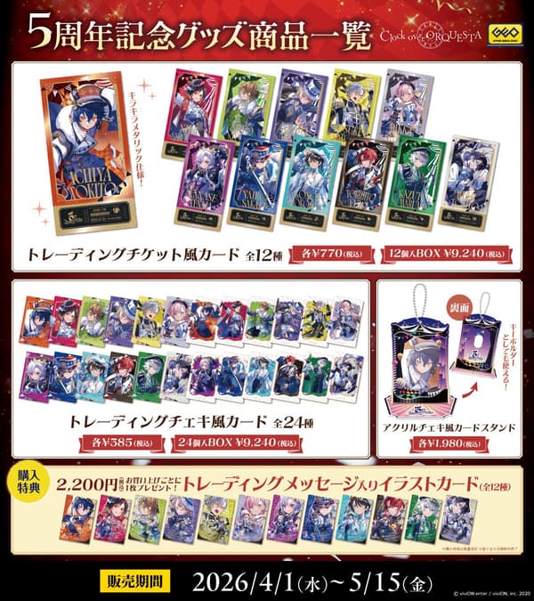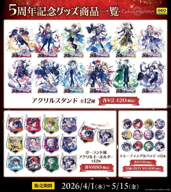 SNS 연동 캐릭터 송 프로젝트 Clock over ORQUESTA(통칭 쿠로케스타) 5주년을 기념하여 기념 상품이 전국 50개 GEO 매장에 한정 판매됩니다. 판매 기간은 2026년 4월 1일(수)부터 5월 15일(금)까지입니다.