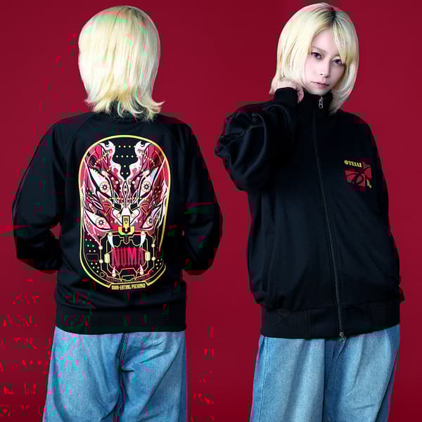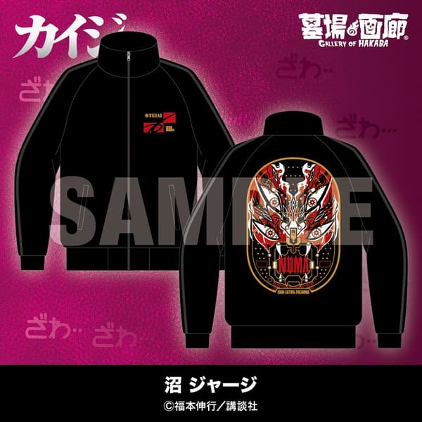 테아이 그룹의 비밀 카지노에 있는 악명 높은 ‘인간을 잡아먹는 파칭코: 늪’에서 영감을 받은 오리지널 저지입니다. 가슴에는 시리즈의 카드 디자인이 있고, 등에는 맹렬하고 인간을 잡아먹는 듯한 눈빛으로 ‘파칭코 늪’ 기계가 표시되어 있습니다.