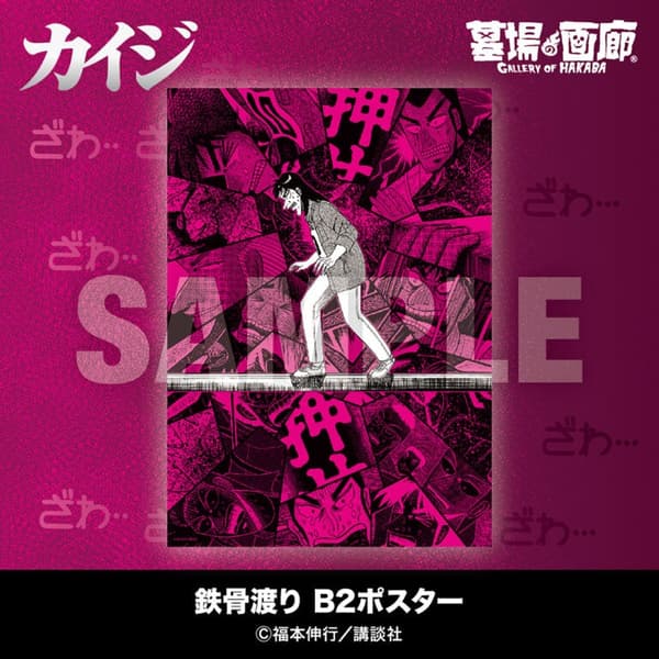 전체 시리즈에서 가장 두렵고 긴장감이 넘치는 대결 중 하나인 ‘철골 건너기’를 포착한 대형 B2 포스터입니다. 기억에 남는 장면 콜라주가 공포와 결의 사이에서 갈등하는 표정의 카이지 중앙 이미지를 둘러싸고 있습니다. 나카노점에서만 독점 판매됩니다.
