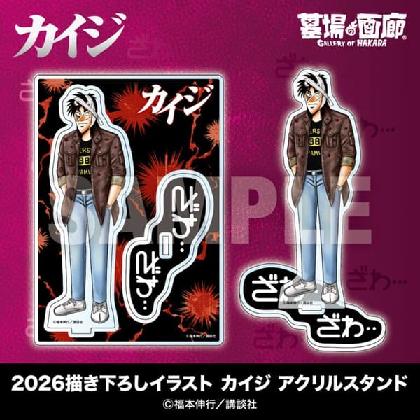 시리즈 제작자 후쿠모토 노부유키가 새로 그린 일러스트로 《도박묵시록 카이지》 시리즈 30주년을 기념하는 아크릴 스탠드로 제작되었습니다. 이 작품은 희망, 절망, 불안, 행운이 섬세하게 혼합된 표정으로 ‘30세의 카이지’를 포착합니다.