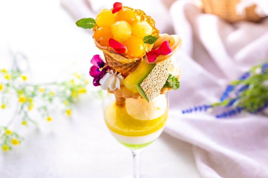 2026년 5월 7일부터 6월 28일까지, 교토 시모교구에 위치한 리가 로열 호텔 교토의 라운지에서 계절 한정 디저트 "멜론 크레페 부케 파르페"를 선보입니다. 우아함과 특별함을 동시에 담아낸 초여름 감성의 멜론 디저트입니다.