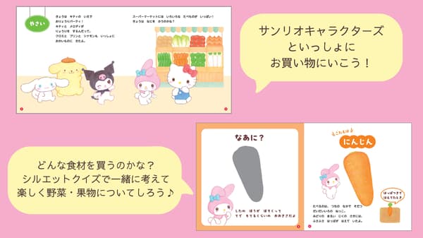 독자들은 헬로키티, 마이멜로디, 시나모롤, 폼폼푸린, 쿠로미와 함께 요리 파티 모험을 떠납니다. 채소와 과일을 사러 가고, 그 과정에서 재미있는 사실을 배우며, 다양한 음식을 즐기는 첫걸음을 내딛습니다.