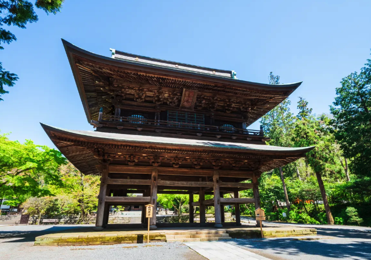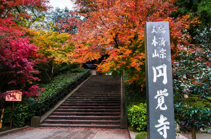 가마쿠라에서 가장 큰 선 사찰로, 웅장한 홀, 고요한 연못, 사찰 뒤편의 아름다운 숲길이 있습니다.