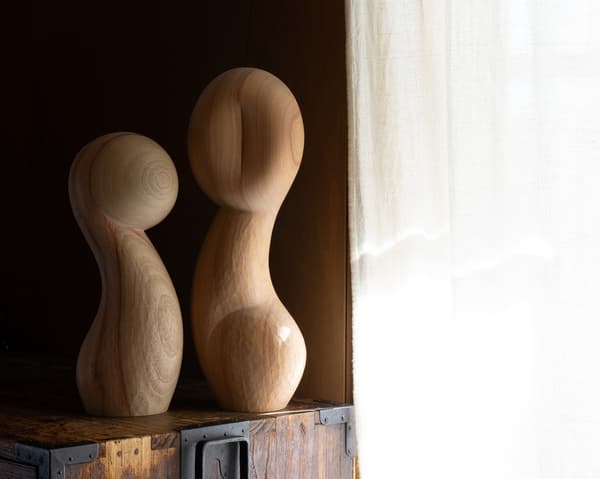 แต่ละชิ้นแกะสลักด้วยมือจากไม้เนื้อแข็ง เช่น วอลนัท เมเปิล และเชอร์รี่ ดึงเอาสี ลายไม้ และพื้นผิวที่เป็นธรรมชาติของไม้ออกมา รูปทรงออร์แกนิก ซึ่งรักษา ร่องรอยของการแกะสลัก ผสมผสานกับการต่อแบบแม่เหล็ก ทำให้เกิดประติมากรรมที่ให้ความรู้สึกสมดุลอย่างเงียบ ๆ แต่ก็กล้าหาญทางโครงสร้าง
