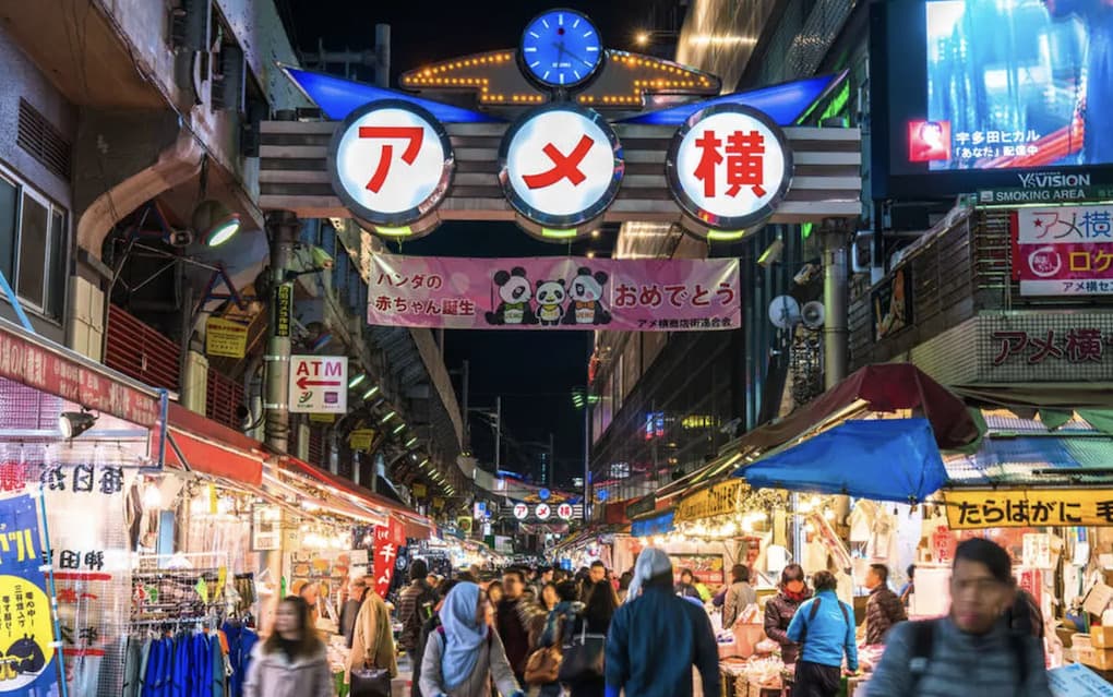 近年来,阿美横丁已成为廉价美味街头小吃的首选之地。热门选择包括新鲜海鲜盖饭(海鲜丼)、章鱼烧、烤串和位于市场中心附近的肉之大山炸肉饼。阿美横丁中心大厦的地下室值得绕道参观,那里有亚洲杂货摊位。如需更深入的夜间体验,请尝试以下体验之一。