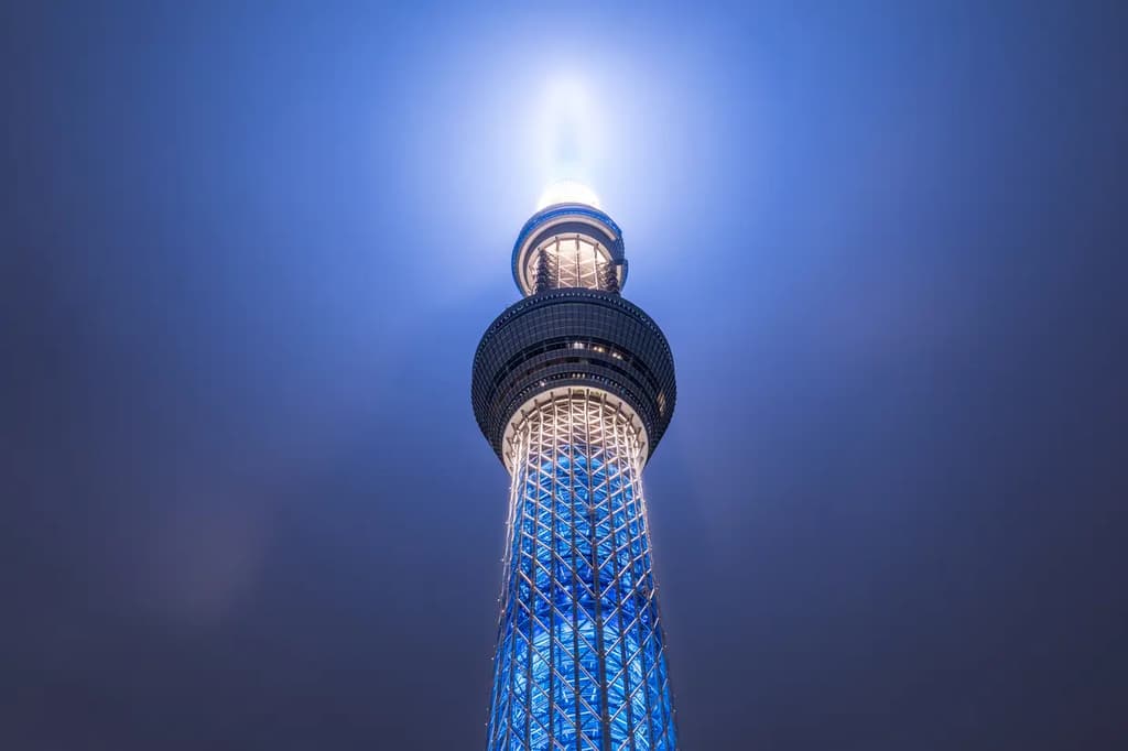 东京晴空塔每晚都有灯饰。通常有三种类型的照明,根据日期而变化。