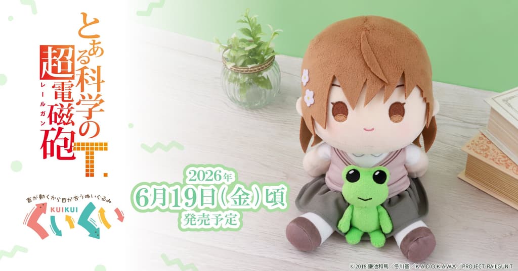 《某科学的超电磁炮》的全新周边商品即将推出。御坂美琴和她心爱的呱太将以“kuikui”的形式登场——这是一种坐姿布偶设计,头部略微倾斜,使玩偶呈现出自然向上看的姿态。