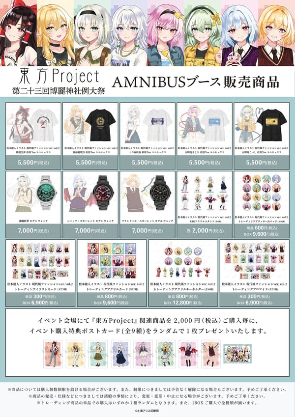 由arma bianca运营的动漫周边品牌AMNIBUS,将在2026年5月4日(星期一,节假日)于东京国际展览中心东展示厅(展位号232)举行的第23届博丽神社例大祭上设立专门展位。