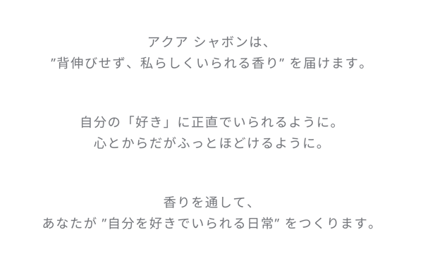 自 2009 年成立以来,AQUA SAVON 在扩大日本淡香氛市场方面发挥了主导作用。近年来,随着香氛市场日益小众化和复杂化,消费者对“自我实现”、“舒适”和整体心理健康的兴趣持续上升。