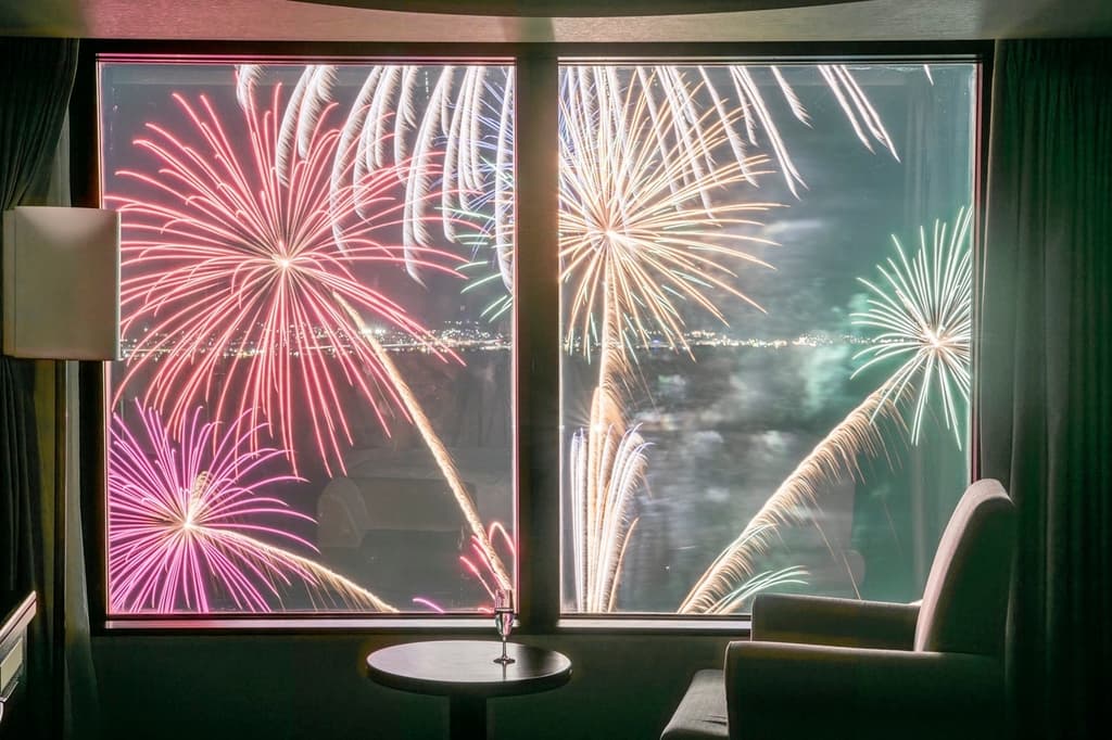 晚餐结束后移至泳池畔观赏烟花。若遭遇雨天,观赏地点将改为王子厅前厅(3楼)。