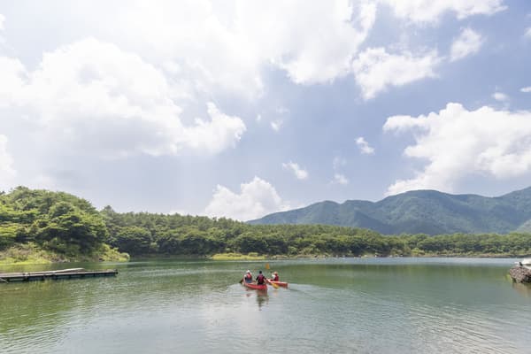 CAMP AKAIKE附近的精进湖是富士五湖之一,可在富士山的映衬下享受划独木舟、SUP及钓鱼等活动。营地内还有一处名为"赤池"(Red Lake)的神秘水池,据说是富士五湖的第六湖。通常情况下它看起来像一处凹地,但据说每隔数年,尤其是大雨过后便会蓄水成湖,是罕见的自然奇观。