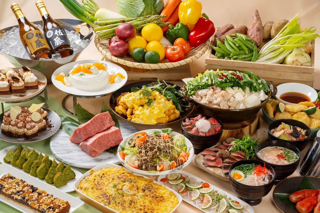 本次自助餐汇聚九州各地深受喜爱的料理,特别邀请鹿儿岛喜来登酒店副主厨东薗勇树监修菜单。主打菜品包括博多内脏火锅、宫崎鸡肉南蛮、阿苏赤牛牛肉饭以及北九州门司港烤咖喱,充分展现九州丰富多彩的地方饮食文化。