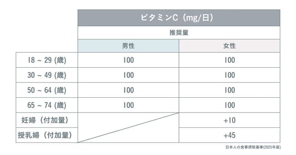 成年人每日建议摄入的维生素 C 为 100 毫克(*3),大约相当于 10 颗草莓或一个金奇异果(*4)。虽然通过日常饮食摄入似乎很容易,但如果跳过早餐、饮食简单或频繁外食,摄入量很容易波动。