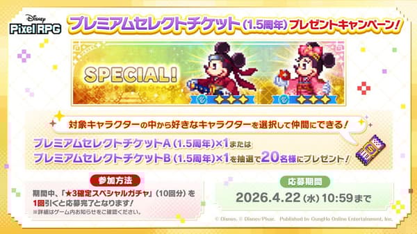 iOS和Android智能手机RPG《Disney Pixel RPG》于2026年4月7日迎来服务开启1.5周年纪念日。为庆祝这一时刻,游戏推出了多项限时活动与庆典。