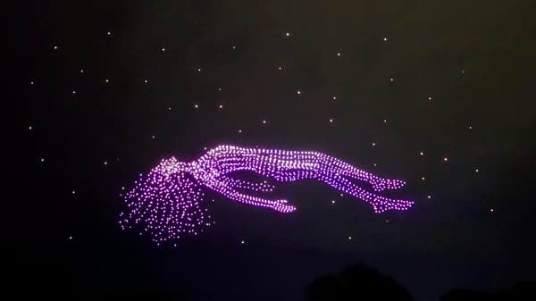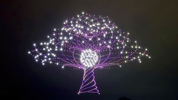 约14分钟的表演将精准的无人机光阵与亮度约为普通LED灯六倍的闪光模块相结合,并搭载烟花的无人机共同呈现,打造出一场震撼而层次丰富的视觉奇观。