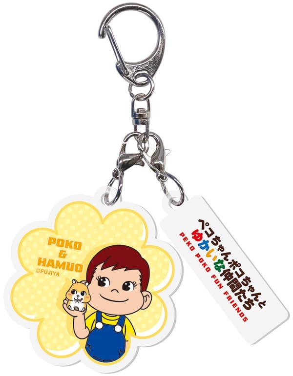这些双层亚克力挂件以可爱的牛奶糖花朵形状,采用色彩缤纷的设计,展示了“Peko-chan、Poko-chan和他们快乐的朋友们”。共有6种款式。