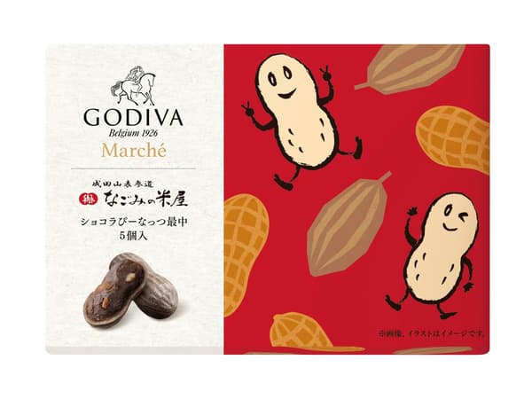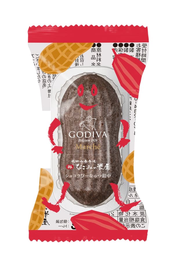 包装设计将和みの米屋人气花生最中的经典外观与GODIVA Marché的品牌标志及可可豆插图相结合,呈现出既亲切又别致的独特风格。无论作为馈赠礼品还是自我犒赏,都是绝佳之选。