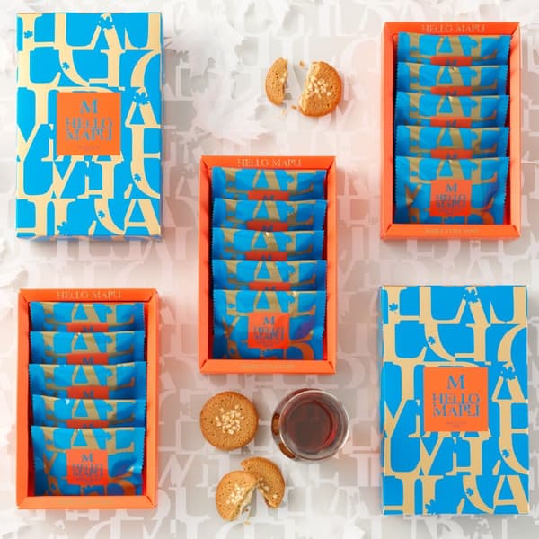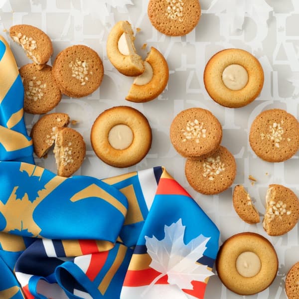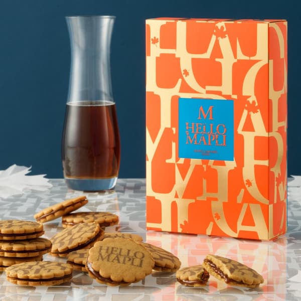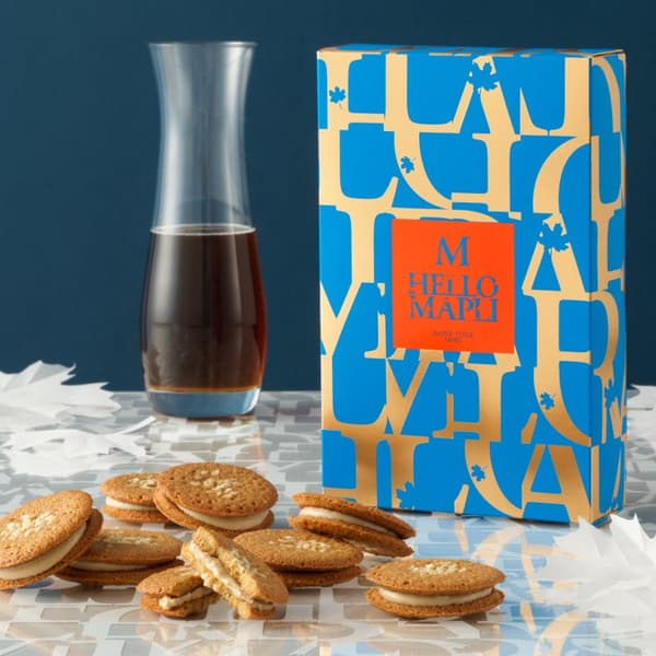 HELLO MAPLI的招牌枫糖甜点组合:酥脆的枫糖薄脆夹心饼干和湿润的枫糖虎皮蛋糕。