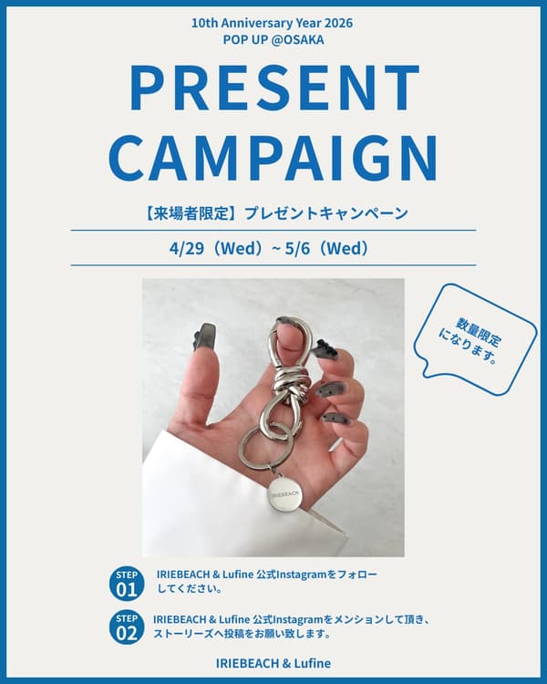 2026年全年被指定为“IRIEBEACH / Lufine 10周年纪念年”,而大阪快闪店是周年纪念项目的首次发布。