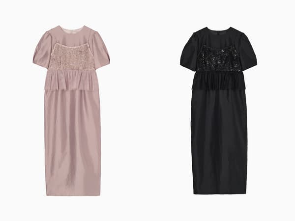 新店在一个反映品牌美学的空间中展示包括连衣裙和黑色正式服装在内的正式服装。