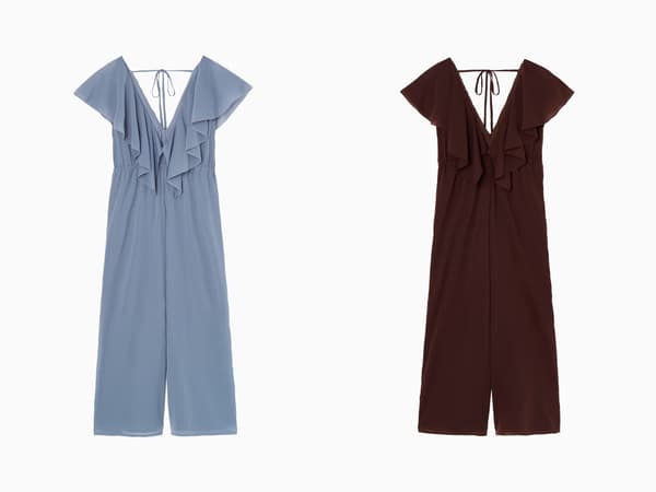 轻盈的裤装连衣裙,饰有大褶边,外观迷人。