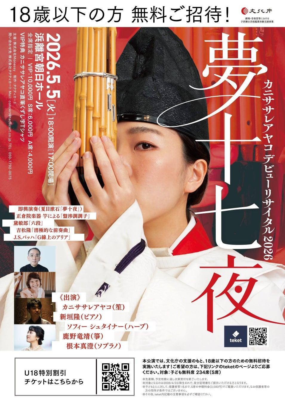 2026年5月5日,音乐家加尼萨雷·彩子将在东京滨离宫朝日音乐厅举办出道独奏会。她以活跃于社交媒体和独特的艺术表现力著称,此次登台将呈现一场融合雅乐乐器、古典西乐与文学即兴创作的跨界演出。