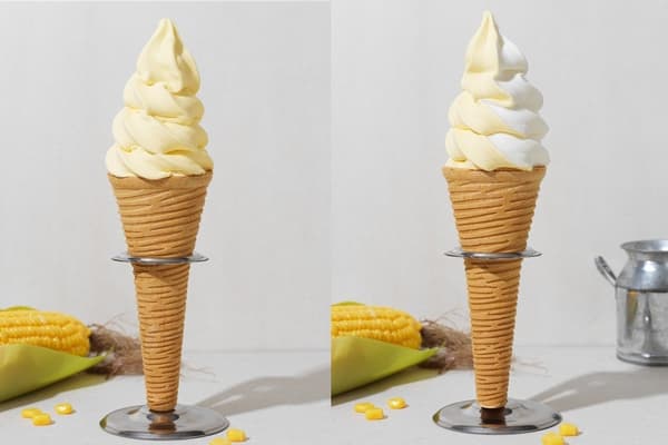 这款甜点的创作目标是将北海道食材的天然风味融入每一口。它采用精心挑选的北海道产牛奶和新鲜奶油,并以北海道产甜玉米(以其浓郁的甜味而闻名)作为特色食材。此外,还加入了岩盐,以突出玉米的甜味并增加深度。最终呈现出一种口感顺滑、奶油味十足、甜度适中的精致冰淇淋。