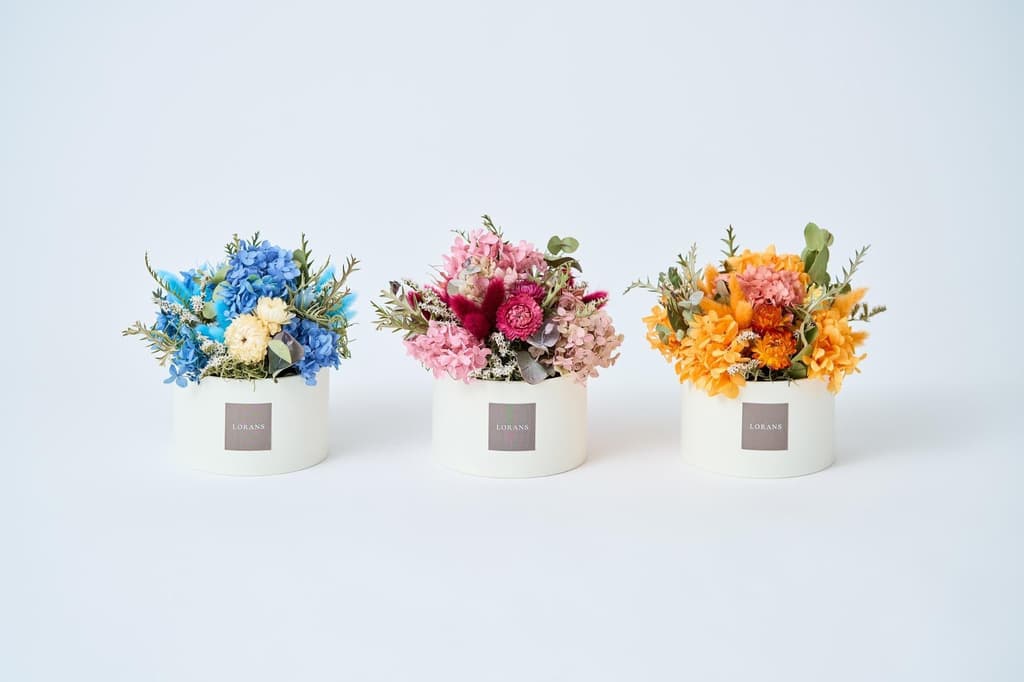 干花产品使用的原料是"废弃花卉"(ロスフラワー®)——这些花朵虽然正值盛开,却因不符合商业规格的尺寸或形状要求、在市场或花店滞销,或仅在婚礼和活动中短暂装饰后便遭到丢弃。Lorans收集这些花卉,精心干燥处理后,将其变成别具美感的干花摆件,赋予它们全新的生命。