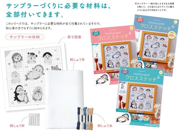 本系列将社交媒体上广受欢迎的“Mofusand”世界与十字绣针线艺术相结合。内容旨在吸引手工新手和角色粉丝。