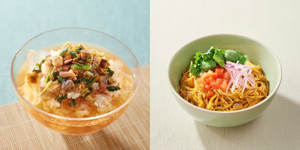 “ごはんにかける冷やし”(冷藏米饭浇头)系列也回归了。今年的阵容包括广受欢迎的冷やしごま豆腐乳担々スープ(冷藏芝麻豆浆担担汤)和冷やし牛だしクッパ(冷藏牛肉汤饭),以及自2012年以来一直是季节性主食的经典夏季宫崎风味冷汁。
