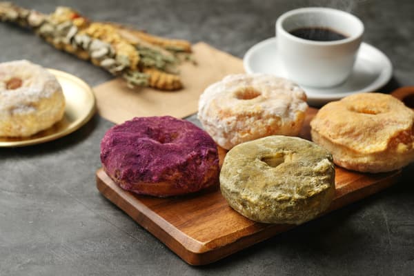 这些台湾甜甜圈起源于台湾的夜市文化,外皮酥脆,内部蓬松。除了紫薯和茉莉花牛奶等受欢迎的口味外,大阪高岛屋还独家提供杏仁口味。