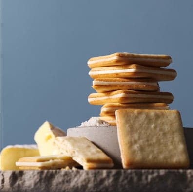 东京牛奶芝士工厂的招牌产品是一种用北海道产牛奶和法国盖朗德盐制成的面团制成的饼干,夹有卡门培尔奶酪巧克力(巧克力涂层)。