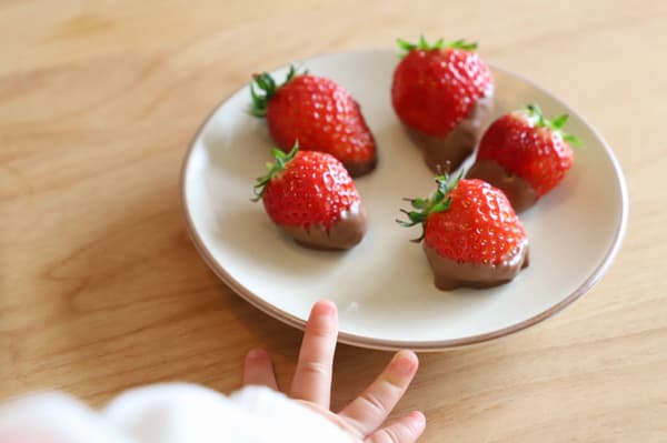一种糕点师体验,孩子们可以用巧克力酱涂抹来自Eminas农场的大而美味的草莓。