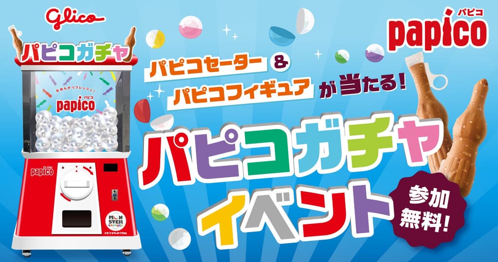 为庆祝江崎格力高(Ezaki Glico)旗下畅销冰品品牌Papico,一场特别活动将于2026年5月4日至6日在东京三个地点举行。届时每个场地都将设置一台名为“怪物胶囊(Monster Capsule)”的2.4米高巨型扭蛋机,参观者可以转动它以赢取独家Papico周边商品。