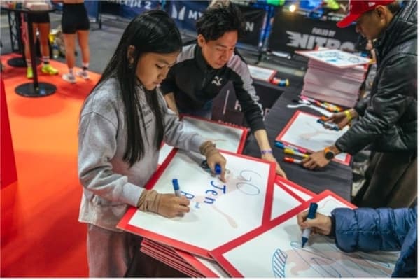 PUMA 在会场内设置了展位,创造了一个体验空间,让参赛者和观众可以随意参观。展位提供加油板、纹身贴纸和照相亭,营造了一个分享观看比赛和为比赛加油的乐趣的空间,吸引了众多参观者。展位还提前展示了首款 HYROX 比赛鞋 DEVIATE NITRO ELITE HYROX。作为一款专为结合跑步和功能性训练的 HYROX 比赛特性而设计的模型,它吸引了参观者的兴趣。