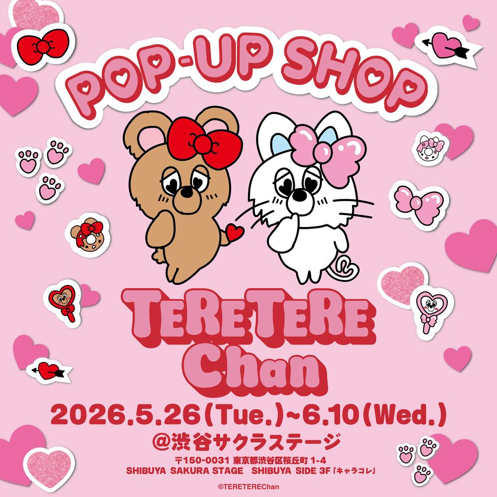 TERE TERE Chan是一个以情感丰富、个性色彩鲜明而备受喜爱,却又十分害羞的可爱角色。它即将入驻涩谷Sakura Stage,举办首场快闪店活动。本次限时活动将于2026年5月26日(星期二)至6月10日(星期三)举行。