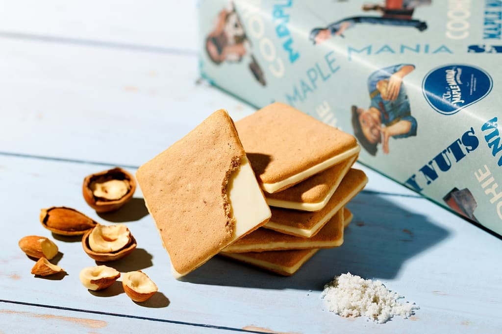 将枫糖揉入酥脆饼干面团,内夹黄油味巧克力夹心。这是 The Maple Mania 的人气No.1招牌商品,曾荣获"JR东日本伴手礼大奖赛2023"综合大奖。