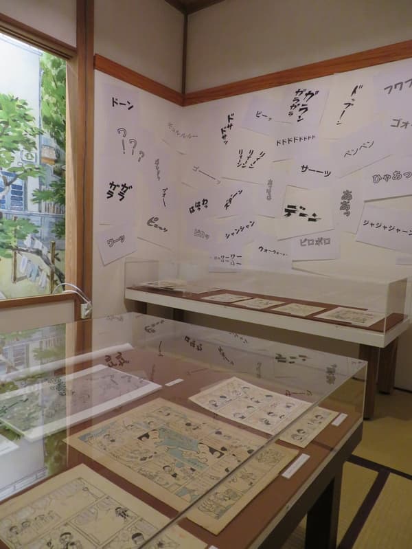 展览提取并展示了馆藏中永田竹丸、横田德男和森安直哉等漫画家原作中的拟声词。这一部分突显了即便表现同一个声音,不同画家的表达方式也会有所差异。