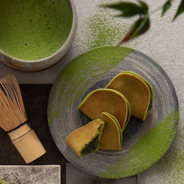 "つばらつばら 抹茶"在Q弹的烤皮和细腻的白豆沙抹茶馅中,全部使用石磨宇治抹茶。石磨研磨能保留抹茶细腻的香气,而这种香气对热敏感,在加工过程中容易流失。由于石磨每小时仅能磨出数十克,成品中呈现的是柔和圆润、清晰可感的抹茶芬芳。