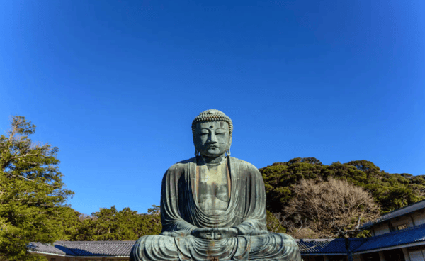 日本标志性的青铜佛像,庄严地矗立在蓝天下。