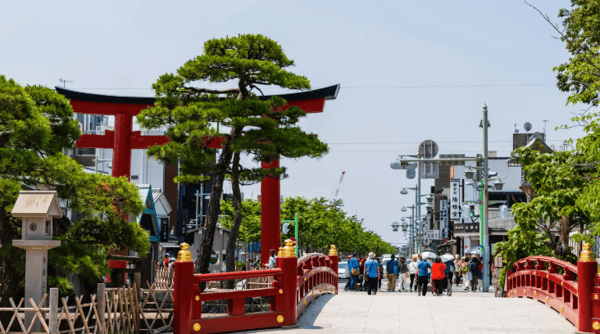📸 热门拍照点——走过鸟居,笔直通向神社。