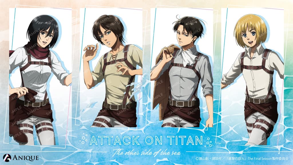 以電視動畫*《進擊的巨人》*中「我們去看海吧」為主題的一系列全新原創商品即將在Anique Shop上架。該系列以動畫工作室全新繪製的插圖以及插畫家冬野カモメ的藝術作品為特色,著重描繪了角色們前往海邊的場景。