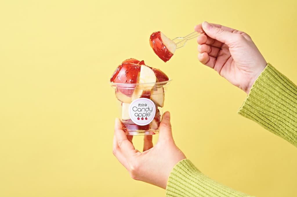 代官山Candyapple的商品陣容每月隨季節更迭,採用當季最鮮甜的頂級品牌蘋果。每款品種均從硬度、甜度、酸度、香氣及多汁程度等面向嚴格評選,並依據各批次特性調整糖衣厚度與溫度,力求將每顆蘋果的風味發揮至極致。